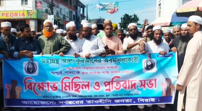 অপুর্ব পালের ফাঁসির দাবিতে দিরাইয়ে বিক্ষোভ