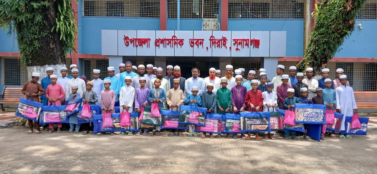 দিরাইয়ে এতিম শিক্ষার্থীদের মাঝে পোশাক ও জায়নামাজ বিতরণ
