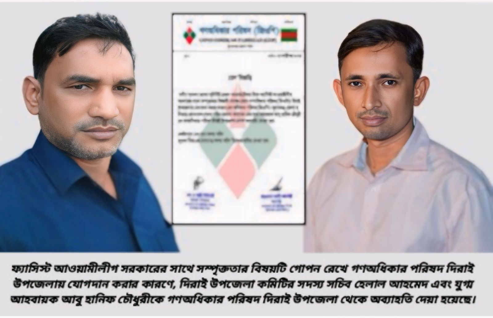 আ.লীগে সম্পৃক্ততার বিষয় গোপন করে গণ অধিকারে যোগদানঃ দিরাইয়ের হেলাল-হানিফকে অব্যাহতি