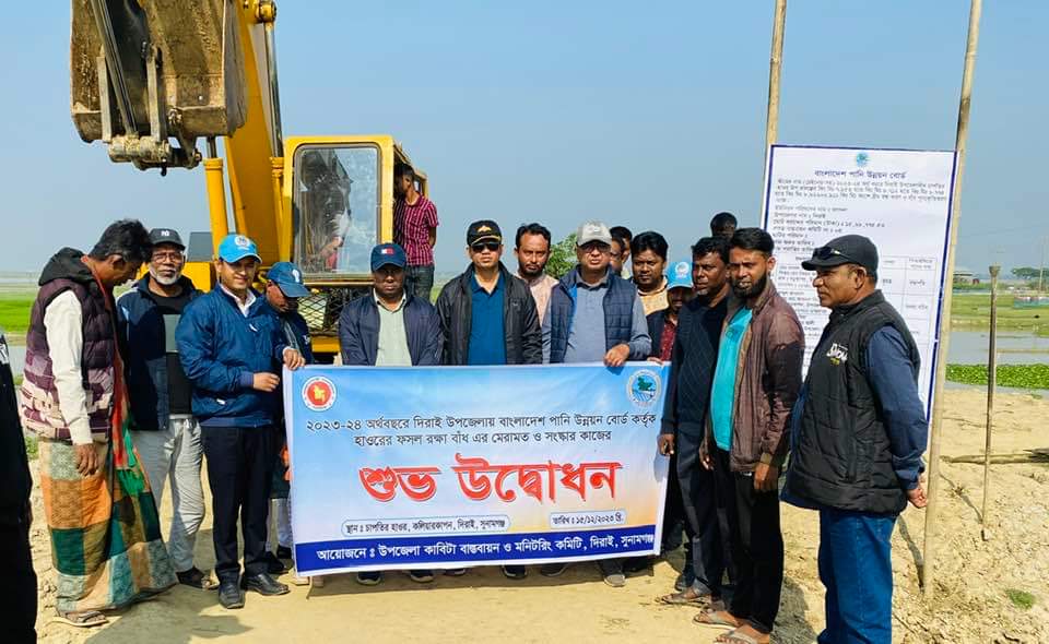 দিরাইয়ে হাওর রক্ষা বাঁধের কাজের উদ্বোধন