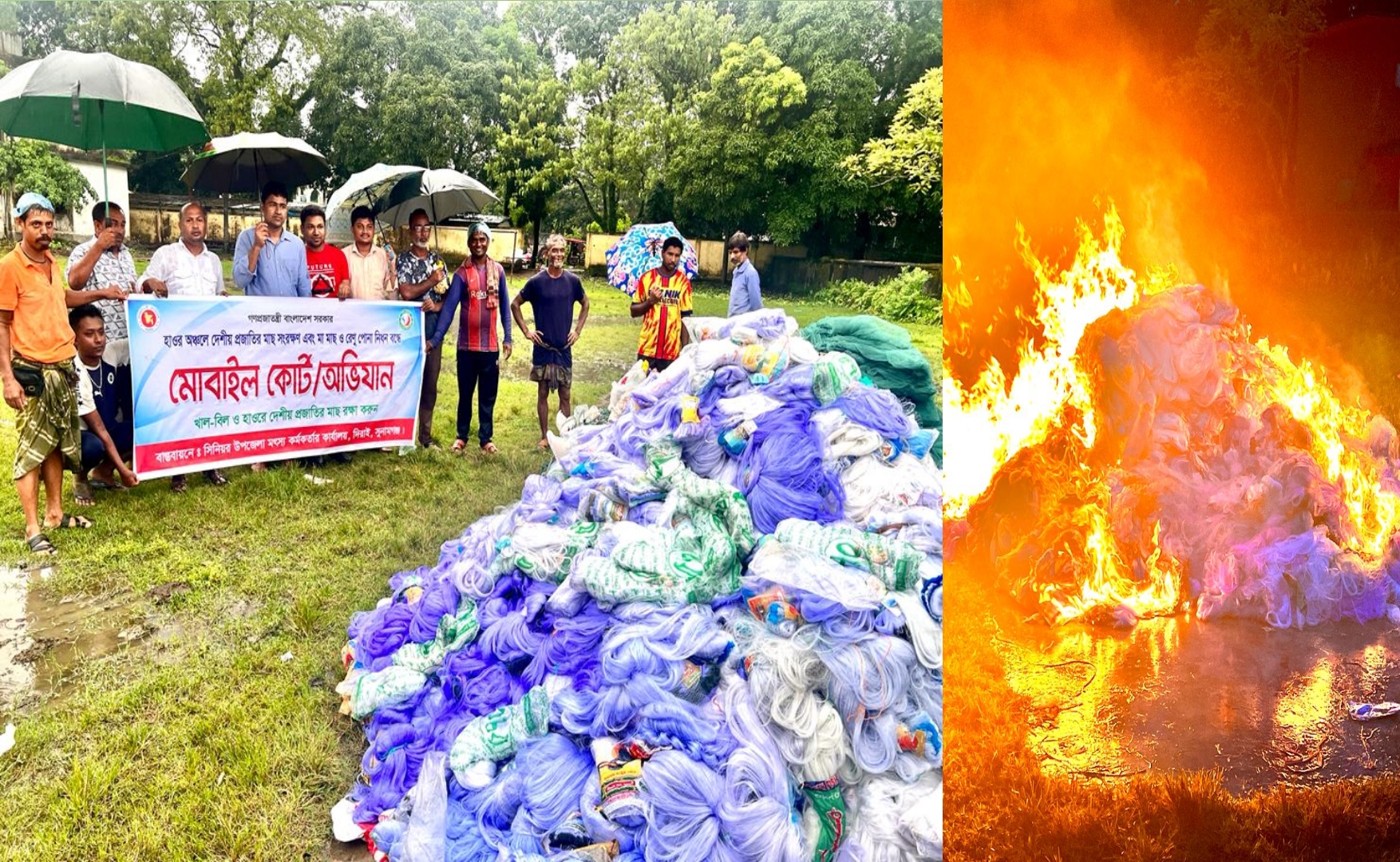 দিরাইয়ে অর্ধ কোটি টাকার অবৈধ জাল জব্দ ভ্রাম্যমাণ আদালতের